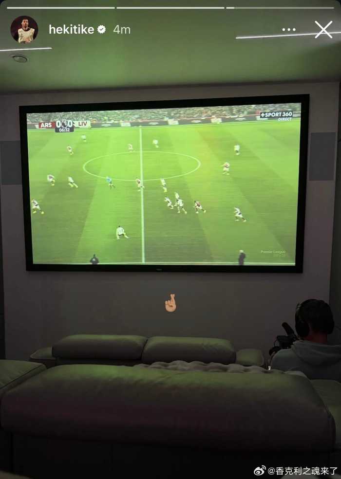 埃基蒂克也在家观看利物浦对阵阿森纳的比赛